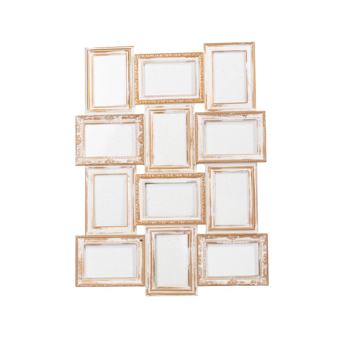 Ajoutez une touche d’élégance à votre décoration avec notre multi-cadre blanc et doré, idéal pour exposer vos photos ou créer un plan de table.